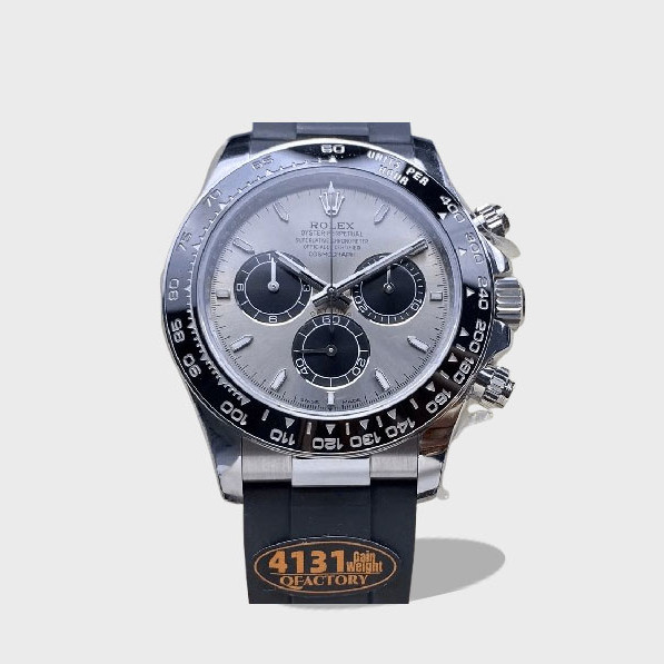 크로노그래프 데이토나 그레이 다이얼 바인덱스 러버밴드 /QF 126519 텅스텐 헤비버전 /40mm /아시안 슈퍼 클론 4131 무브먼트(28800vph), 정품 무브먼트와 1:1 복제, 완벽한 기능. 정품과 동일한 블루 스프링. 72시간 파워 리저브, 상하이 4131 무브먼트