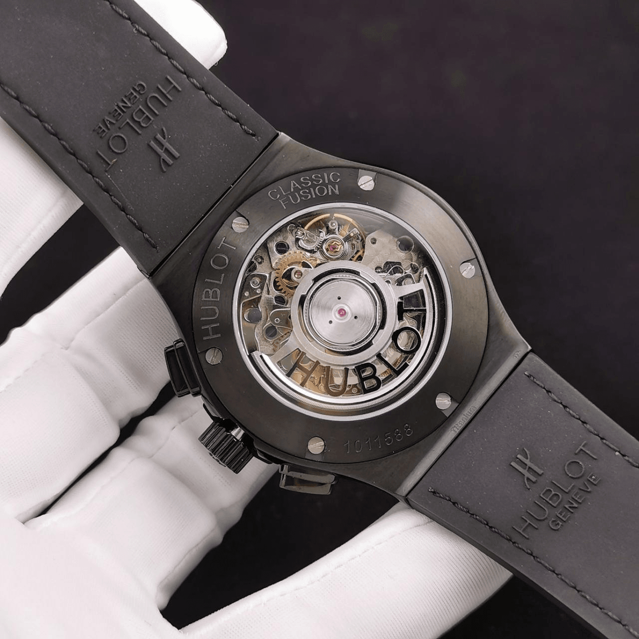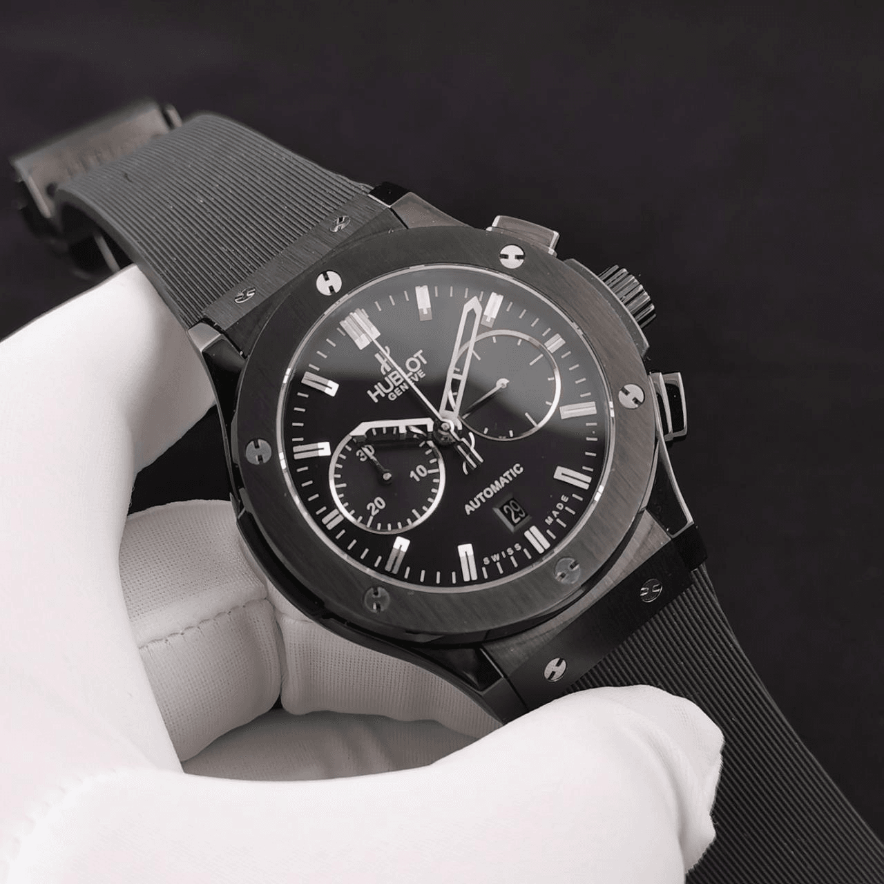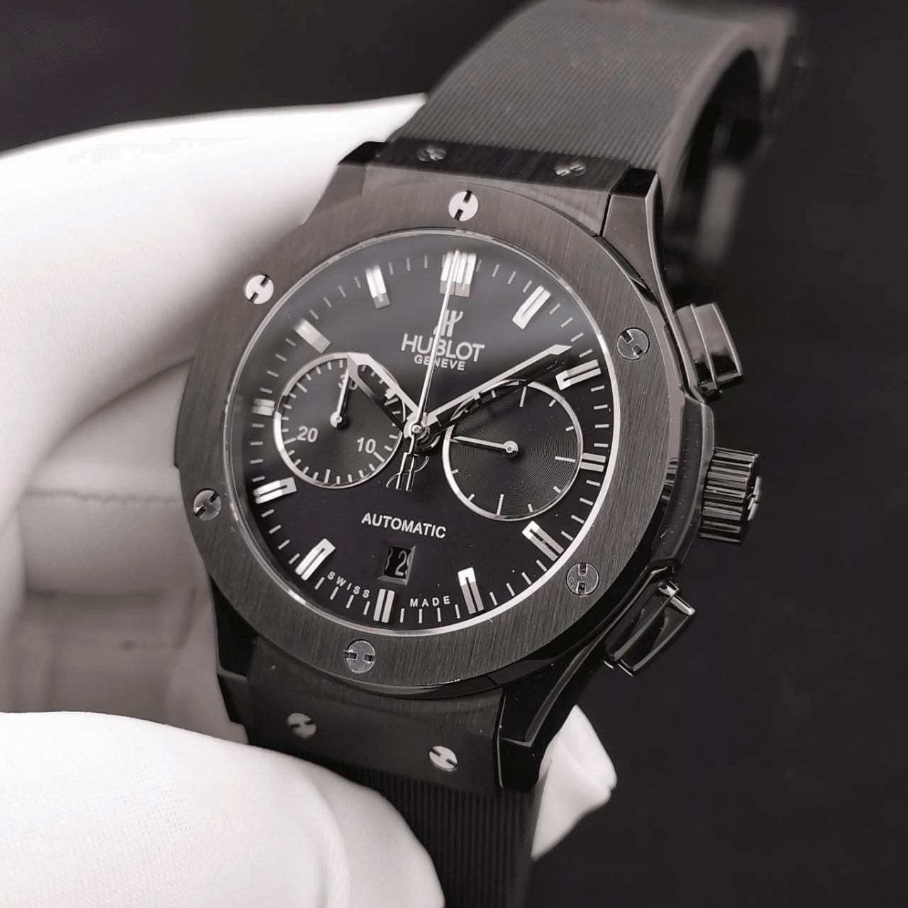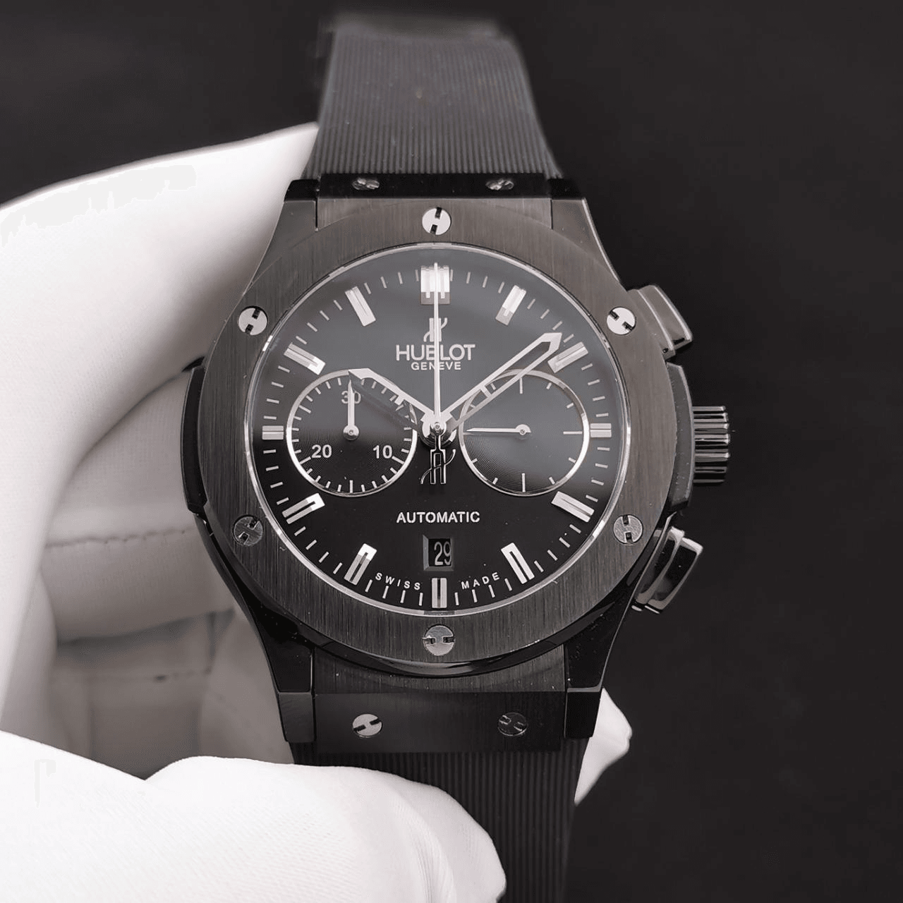 클래식 퓨전 크로노그래프 블랙 다이얼 세라믹 러버 스트랩 / HB 521.CM.1171.RX / 45mm / Hub 7750 다기능 크로노그래프 무브먼트