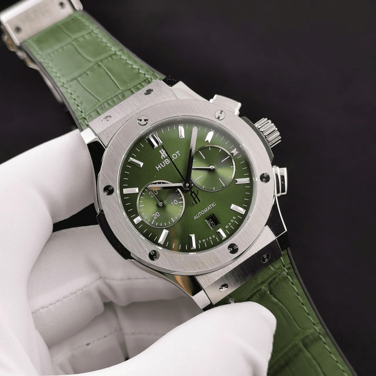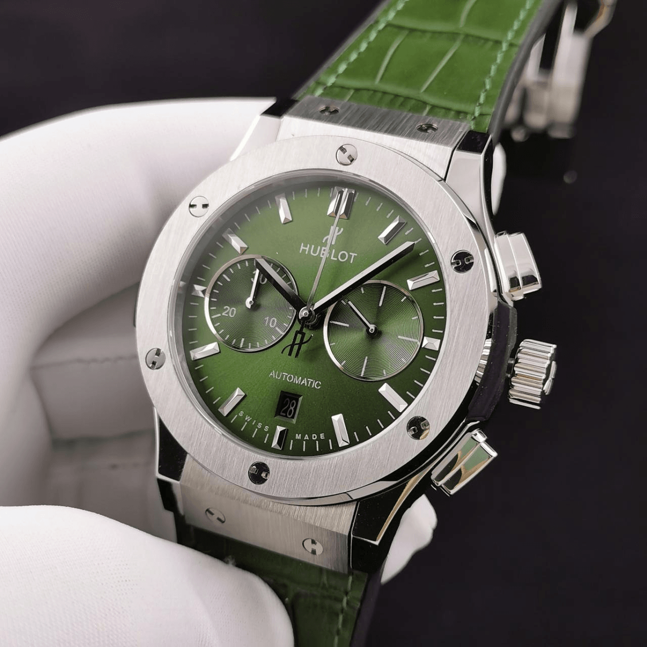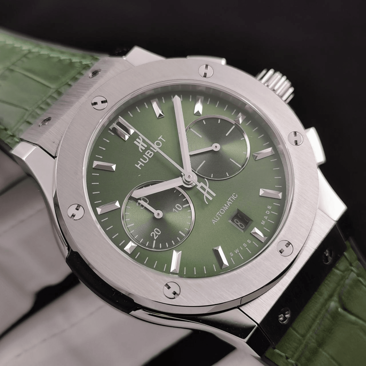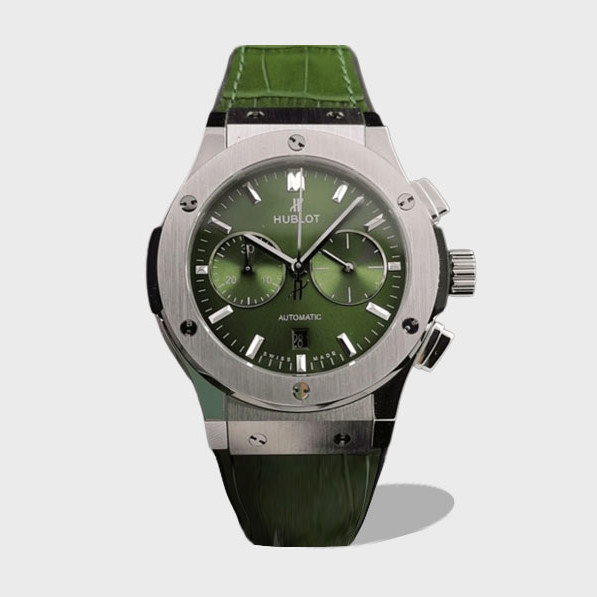 클래식 퓨전 크로노그래프 티타늄 그린 선레이 다이얼 가죽 스트랩 / HB 521.NX.8970.LR / 45mm / Hub 7750 다기능 크로노그래프 무브먼트
