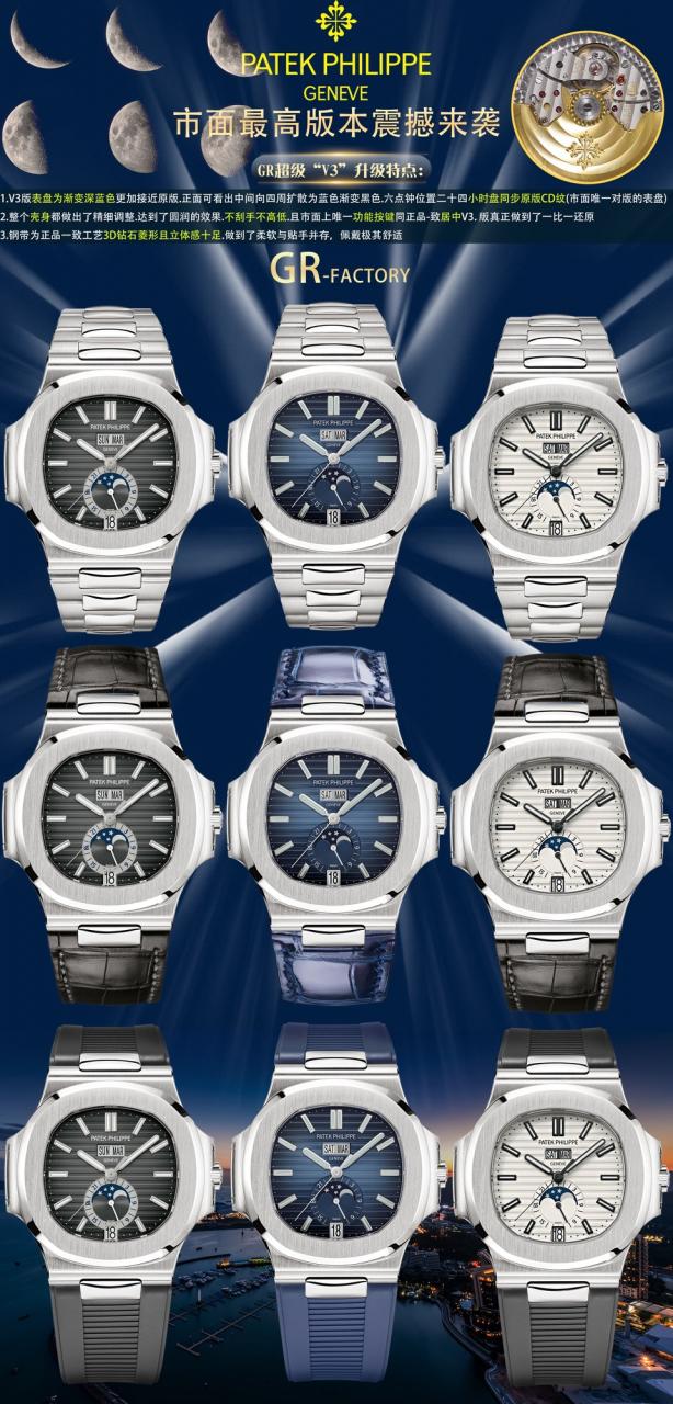 노틸러스 청판 에뉴얼캘린더 문페이즈 스틸 / GR 5726 / V3 최신버전, 다이얼 개선 최신판