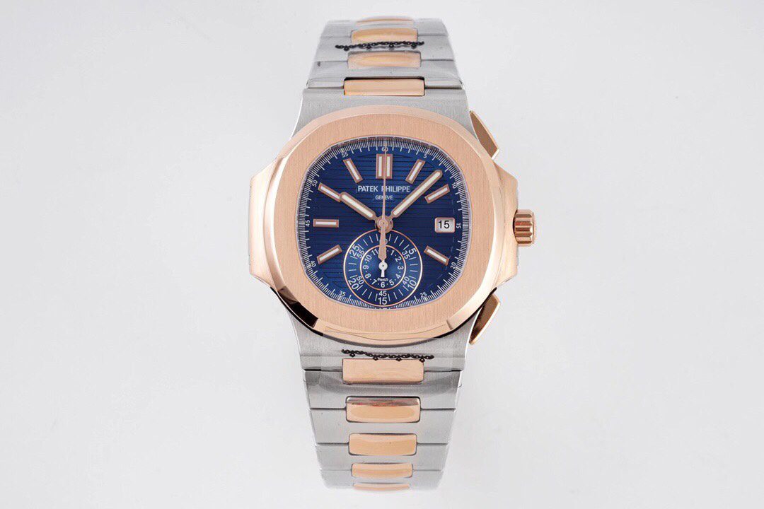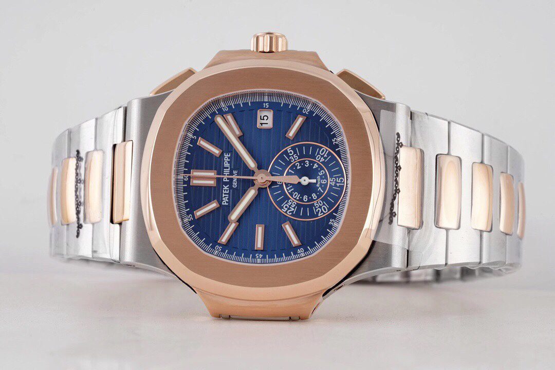 노틸러스 트래블타임 청판 다이얼 로즈골드 금통 콤비 / 3K 5980 / 40mm / 맞춤형 PP.CH28-520 자동 크로노그래프 기계식 무브먼트